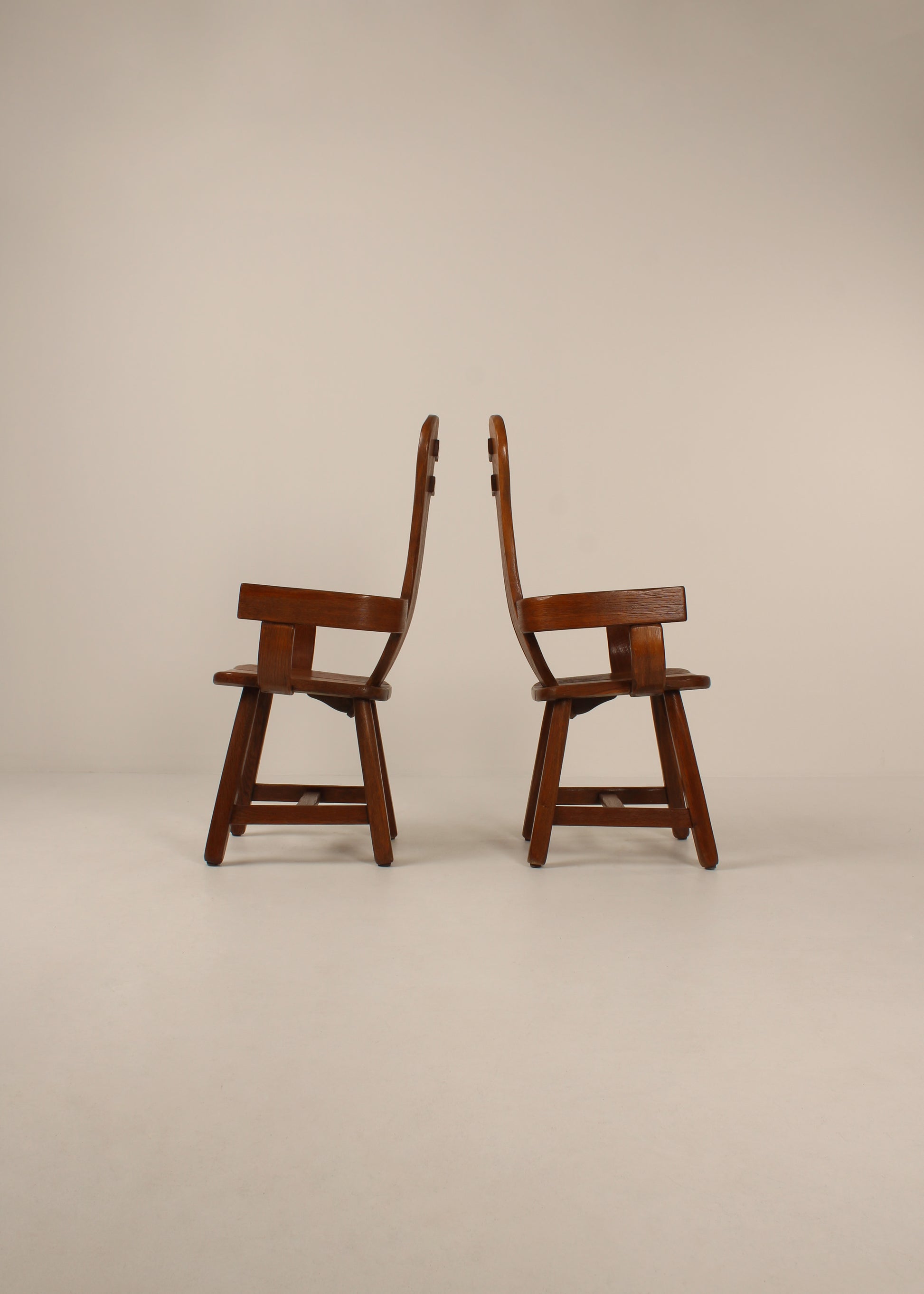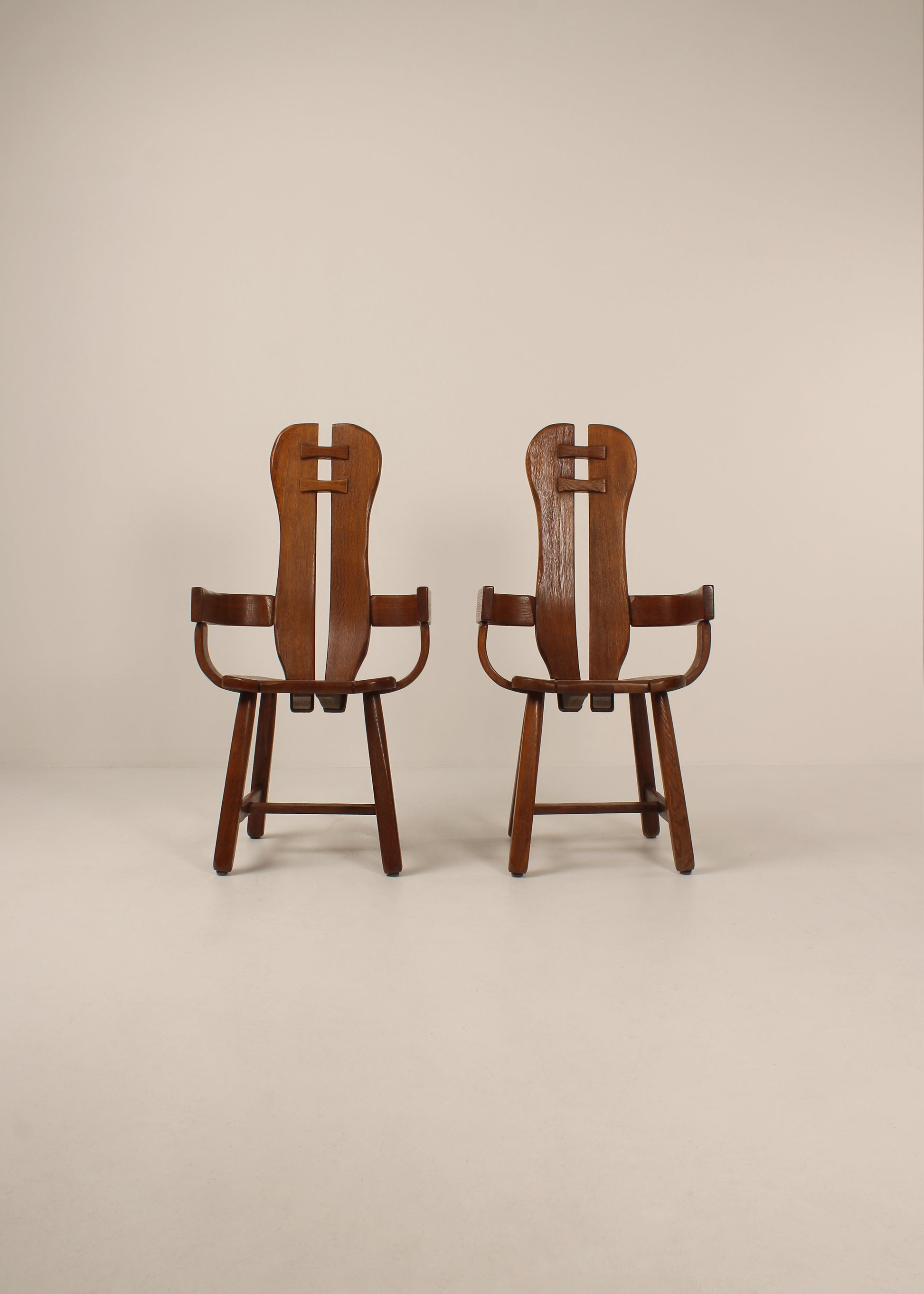 Pair of oak De Puydt dinging chairs with arms, Mid - Century