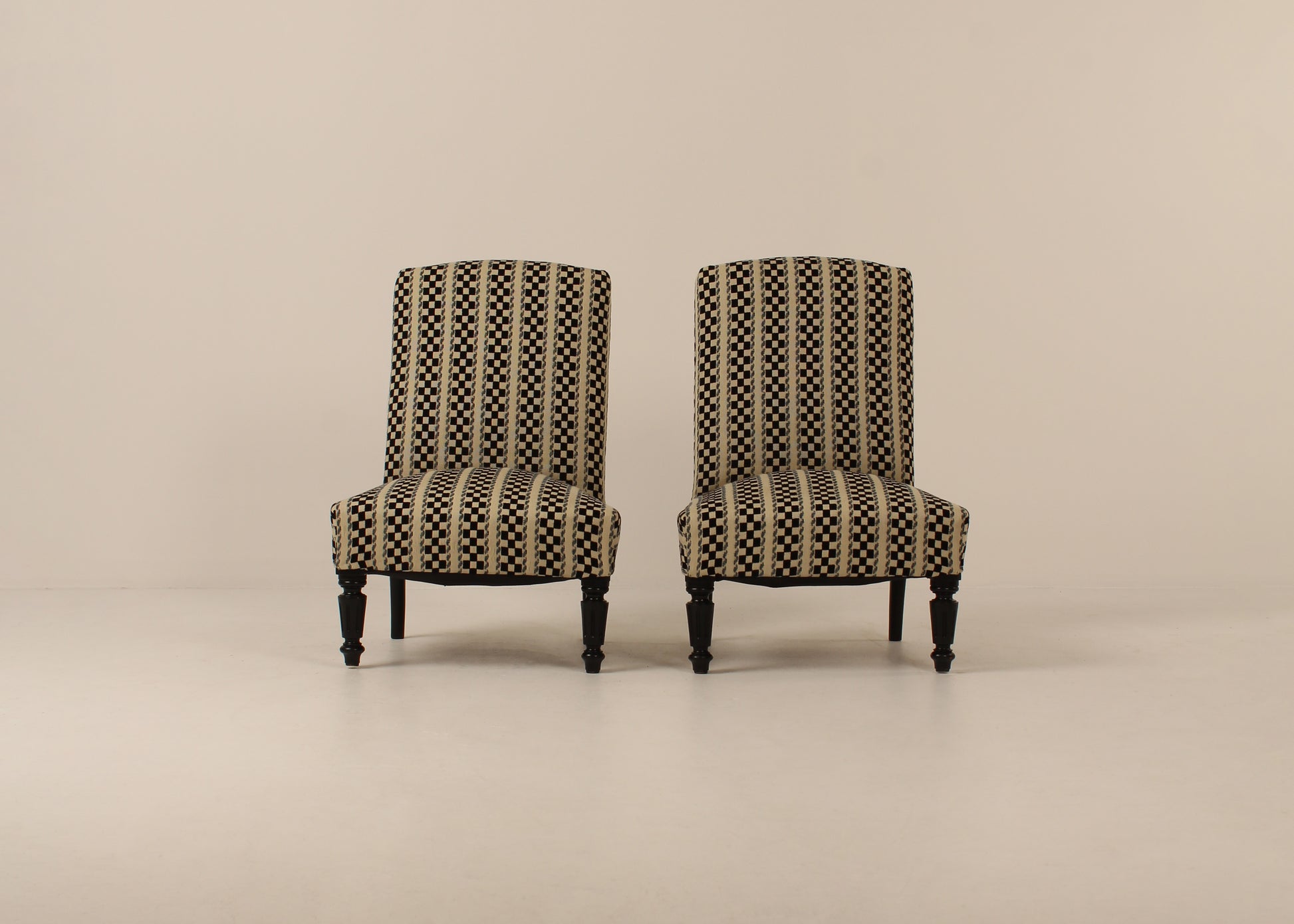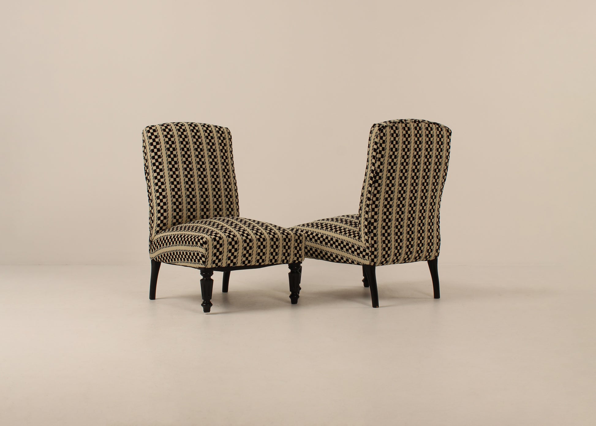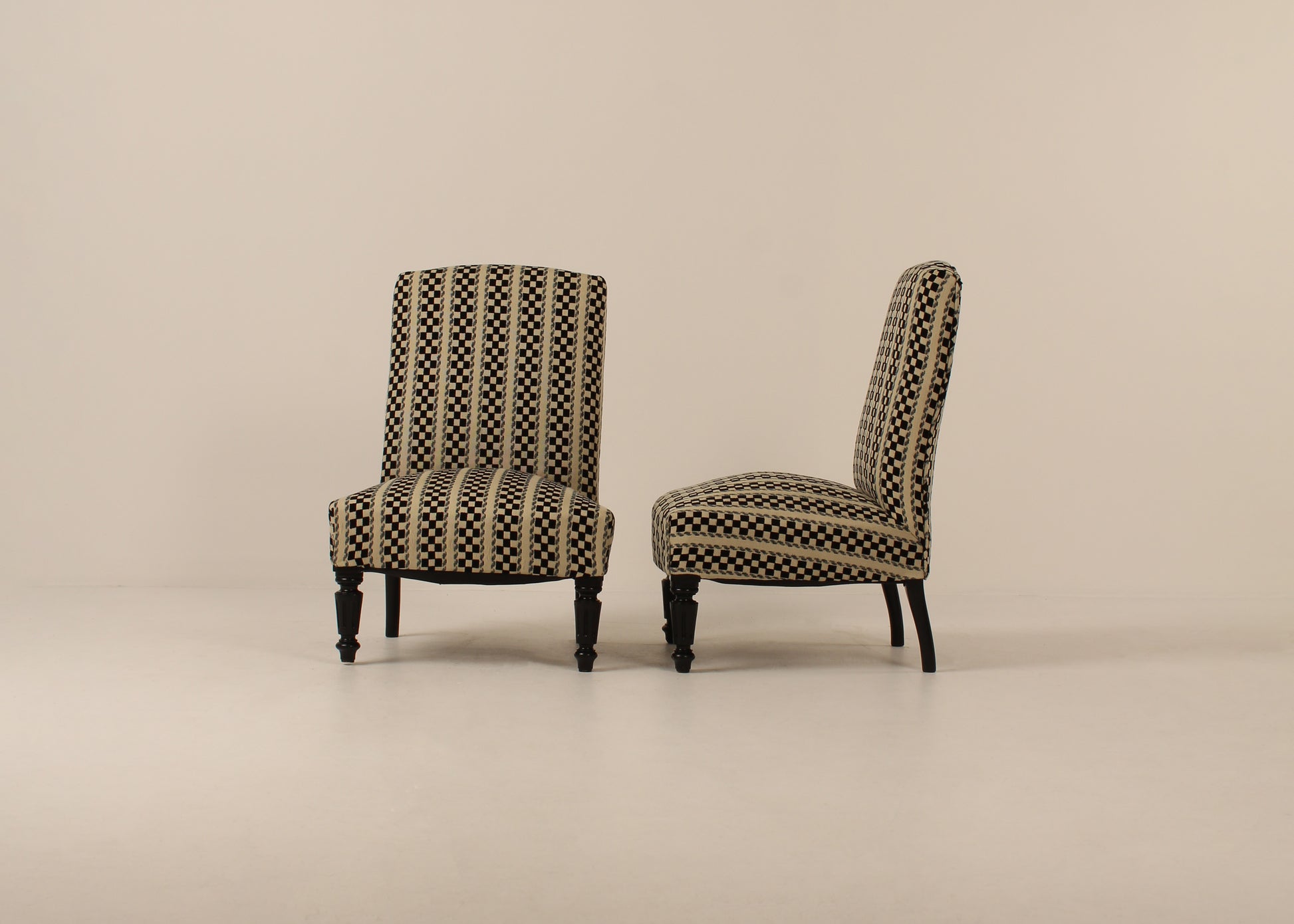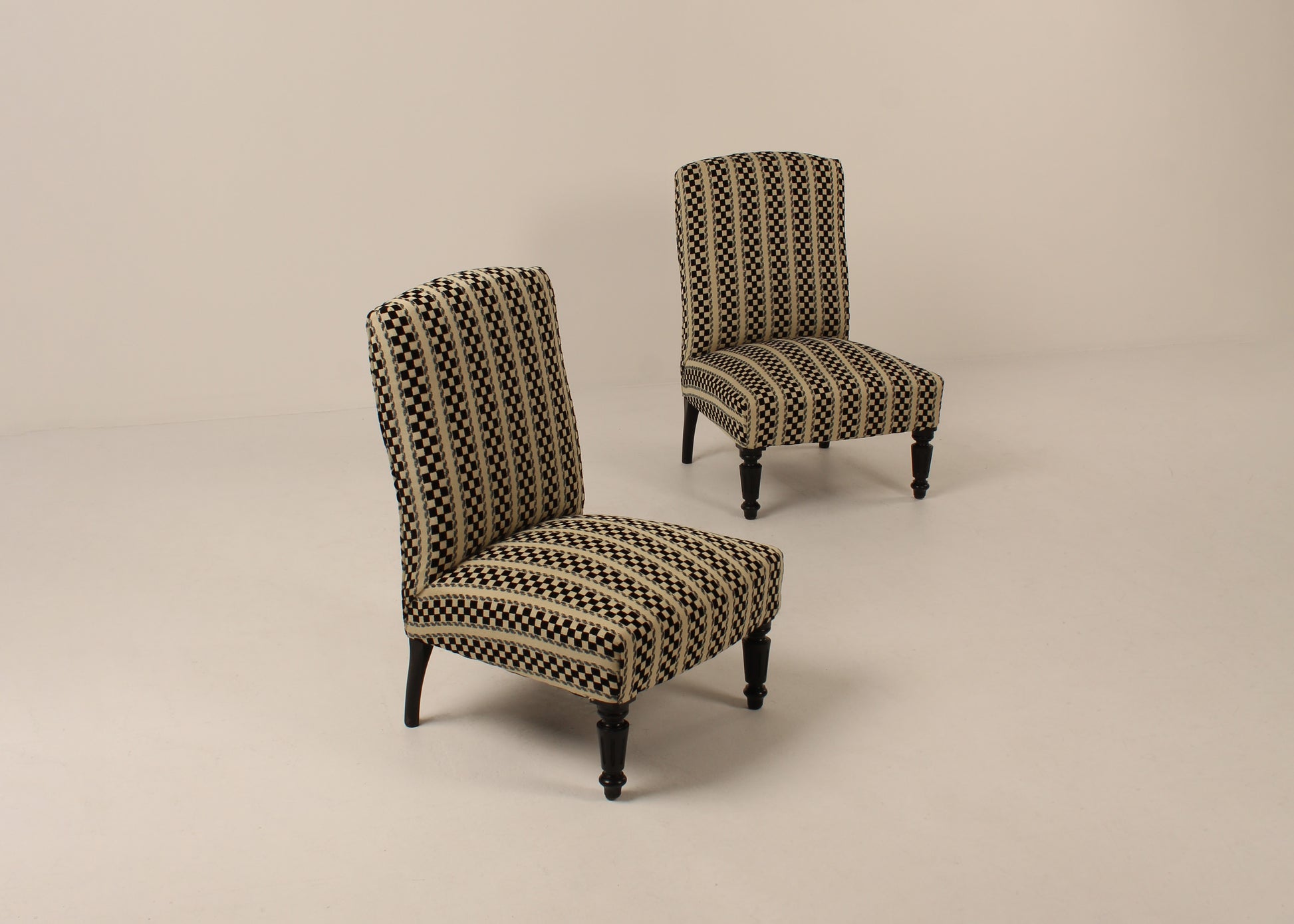 Pair vintage french side chairs, Pierre Frey fabric , France